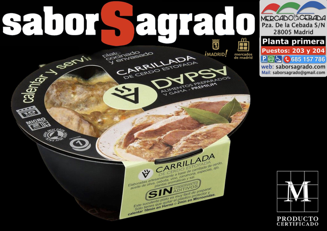 Carrillada de cerdo estofada, cocinada a fuego lento, como antaño y con todo el sabor de la auténtica cocina de nuestros abuelos. Peso por unidad es de 310 gramos